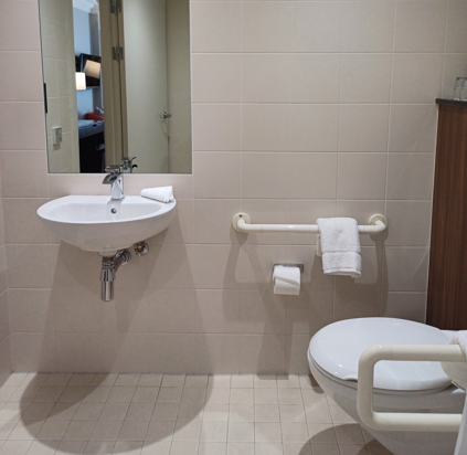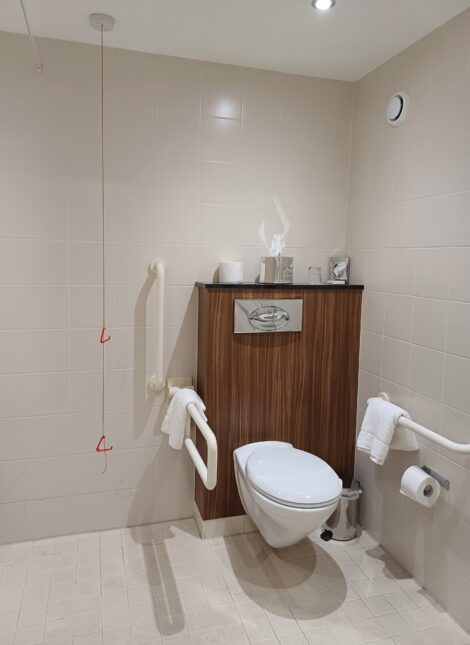 All accessible bathrooms are equipped with an emergency button, which is connected to our 24-hour reception.