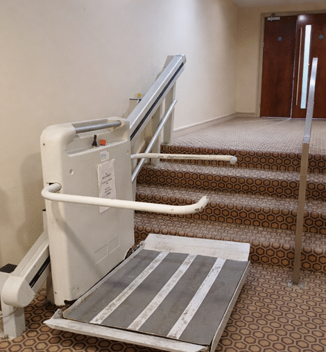 Access to the upper floors is provided by lifts, including a platform stairlift providing access to the Upper Bar area.